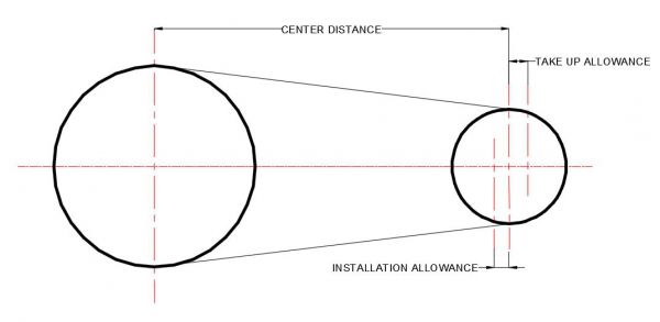 It is prudent design to allow for the following center distance movement for installation and tensioning